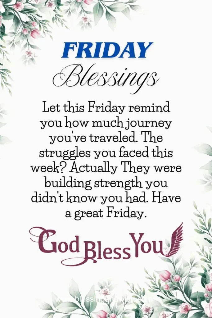 Thoughtful words filled with encouragement often become meaningful Happy Friday blessings, reminding loved ones they are valued and remembered. Many also turn to Friday blessings quotes for inspiration and comfort during quiet moments. These heartfelt Friday blessings and prayers create warmth, strengthen spiritual connection, and inspire calmness, allowing everyone to welcome the weekend with positivity and renewed faith.